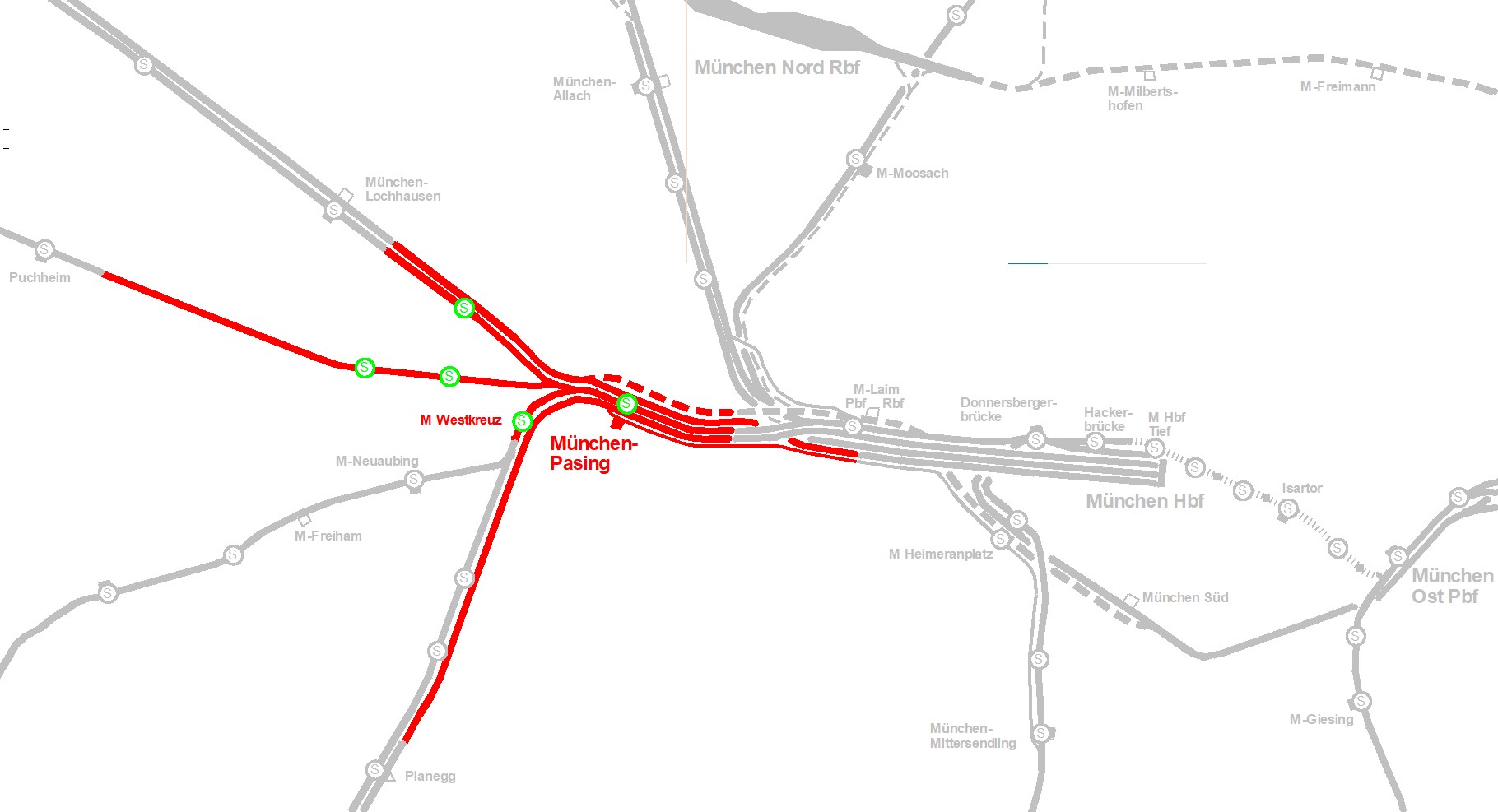 • (M-Laim Gbf) – M-Pasing – (M-Pasing Betriebsbahnhof)